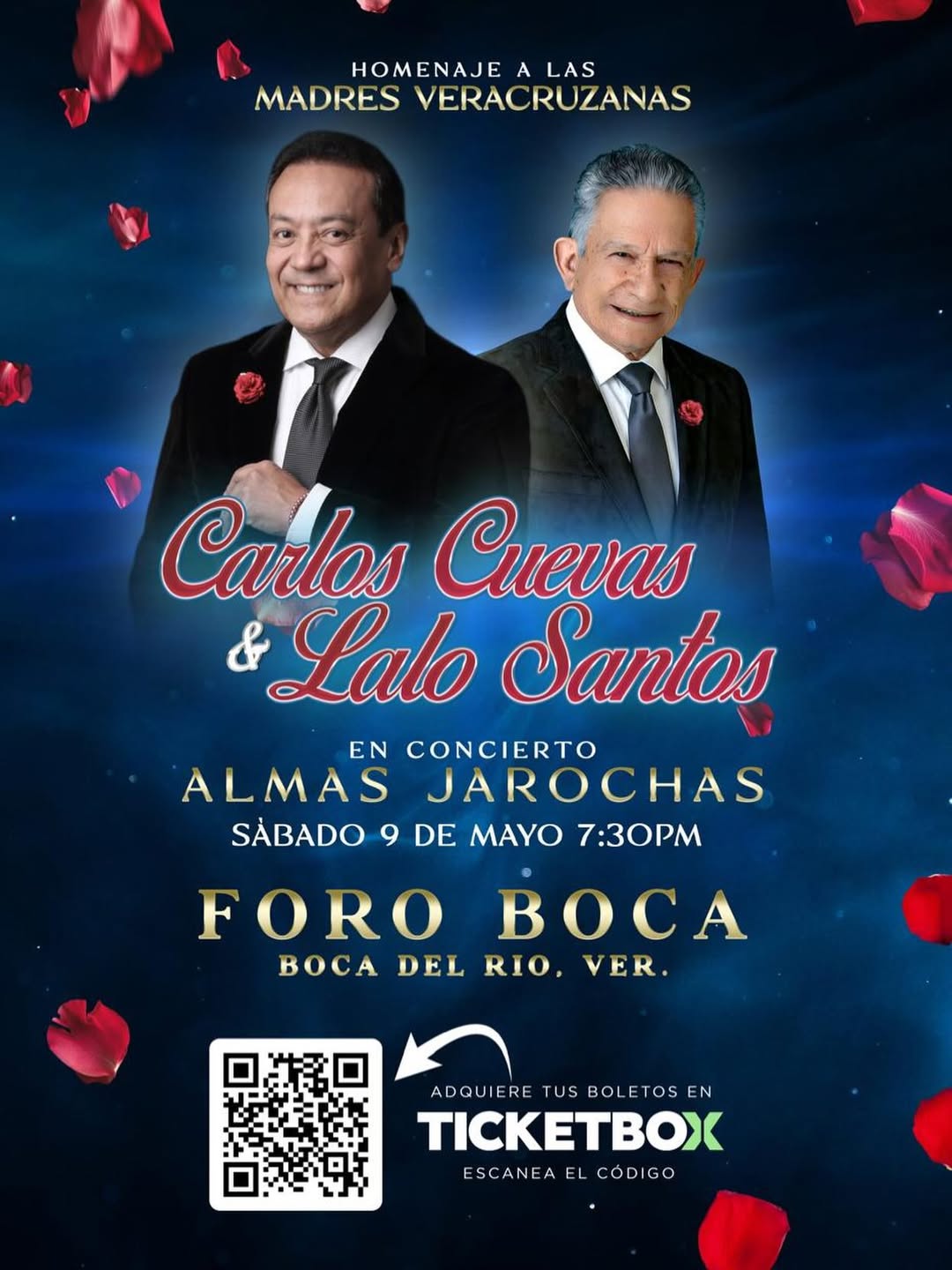 Almas Jarochas mayo 9, 2026 Boca del Río, Ver Foro Boca Carlos Cuevas & Lalo Santos En Concierto – Almas Jarochas Sabado 9 de Mayo – 7:30PM – Foro Boca Boca del Rio, Veracruz Boletos disponibles en TicketBox